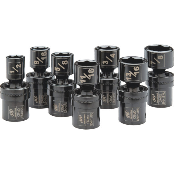 SK4H7UN Ingersoll Rand 7PC 1/2” Drive Hex SAE Universal Impact Socket Set. Warranty: Lifetime Limited Special Features: Impact-grade toughness Chrome-molybdenum steel Drive Size: 1/2” Drive Type: Square Finish: Chrome-molybdenum steel