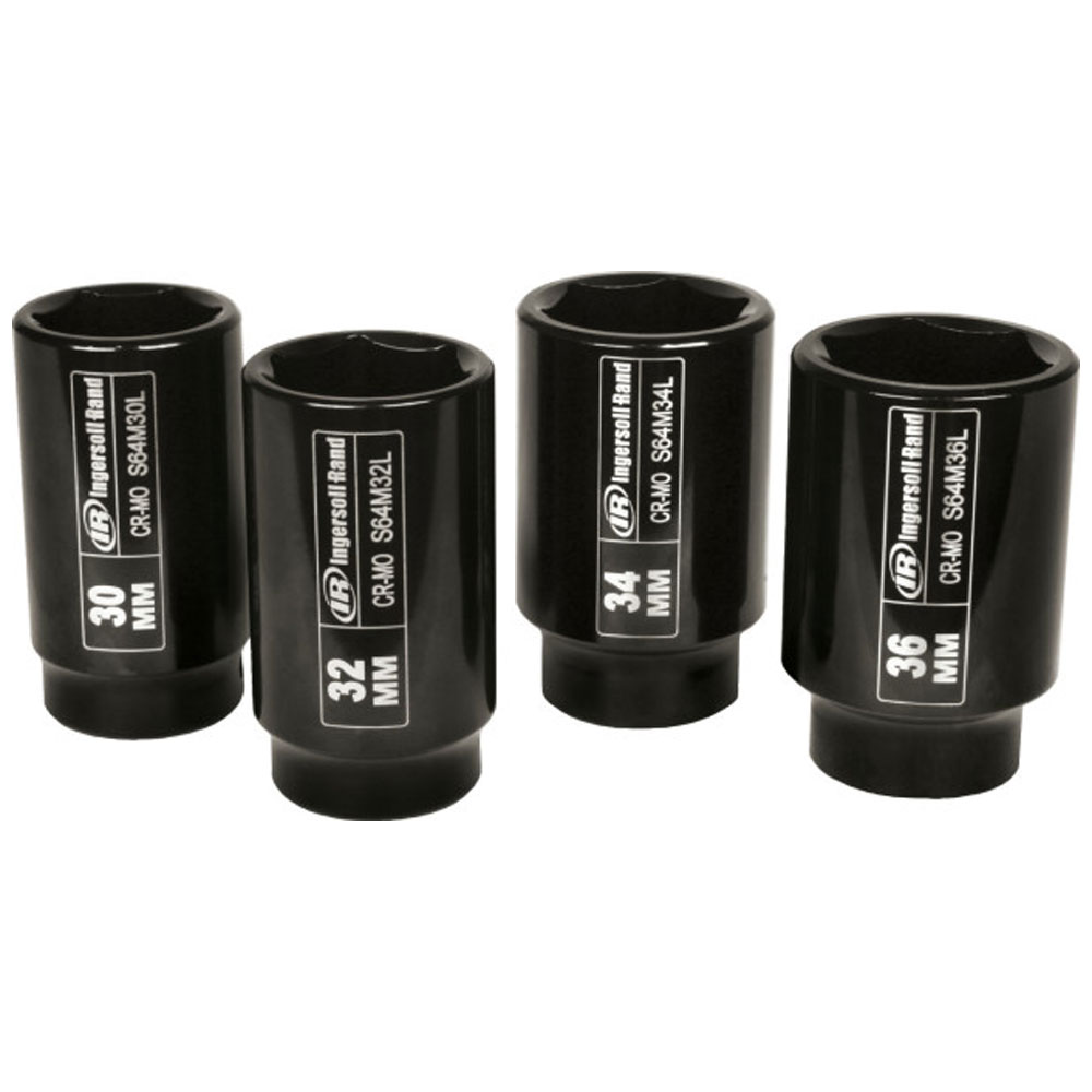 SK4M4LN Ingersoll Rand 4PC 1/2” Drive Hex Deep Metric Tire Impact Socket Set. Warranty: Lifetime Limited Special Features: Impact-grade toughness Chrome-molybdenum steel Drive Size: 1/2” Drive Type: Square Number of Points: 6 Socket Depth: Deep