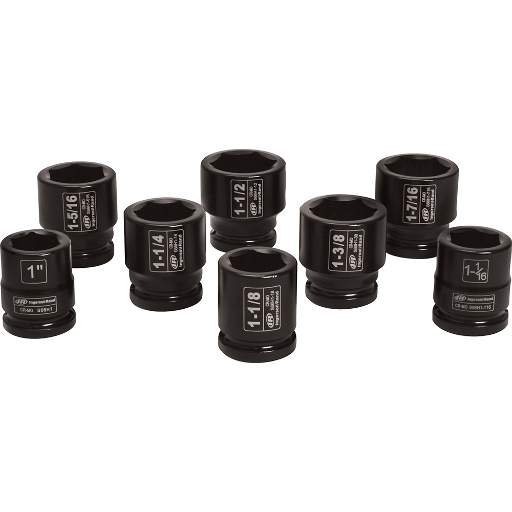 SK6H8N Ingersoll Rand 8PC 3/4” Drive Hex SAE Universal Impact Socket Set. Warranty: Lifetime Limited Special Features: Impact-grade toughness Chrome-molybdenum steel Drive Size: 3/4” Drive Type: Square Finish: Chrome-molybdenum steel