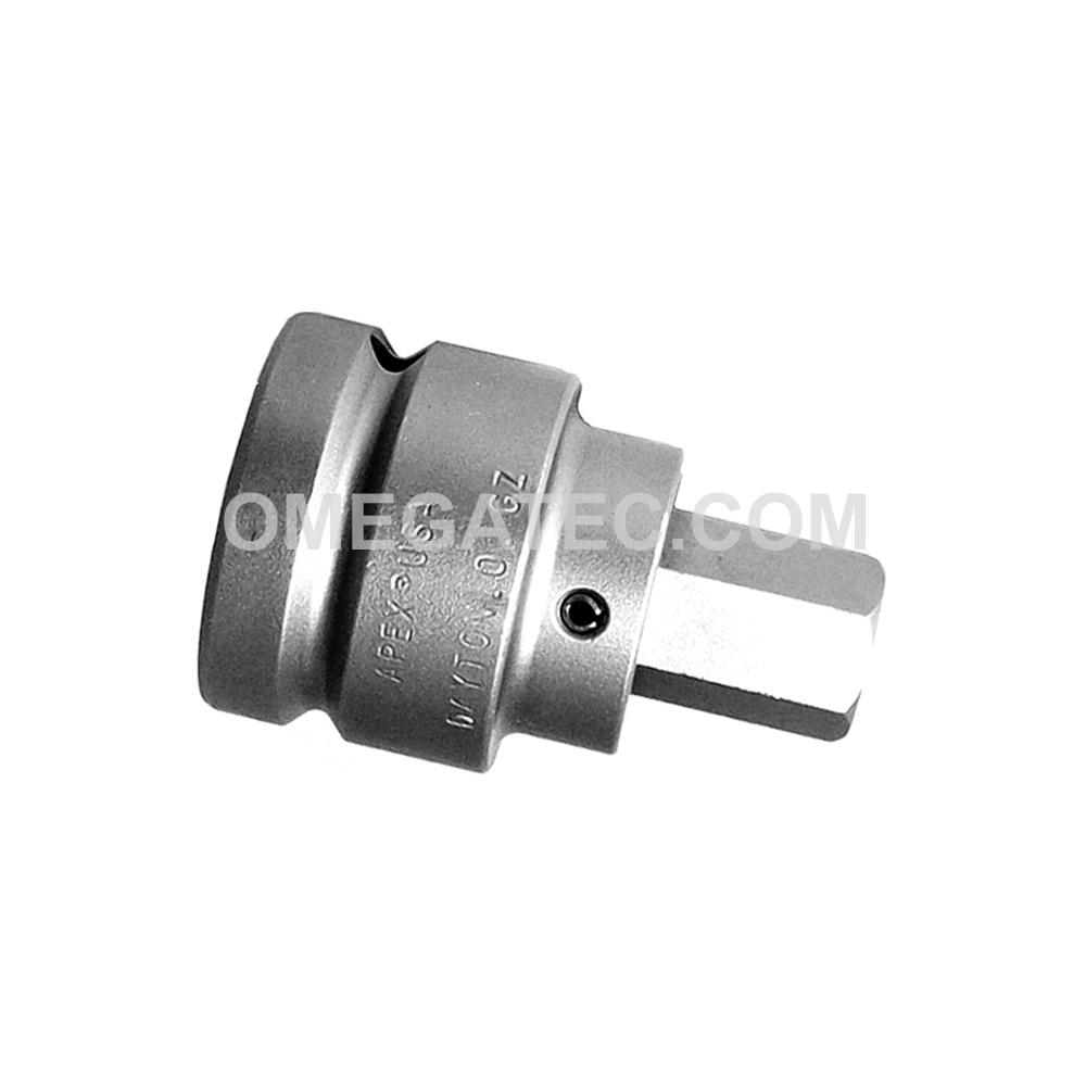Apex® 1” socket head (Hex-Allen) bits with square drive adapters, metric. Hex Size: 22mm Overall Length (in./mm): 3 5/16”/ 88mm Length Of Insert (in./mm): 2”/ 51mm Bit Length (in./mm):