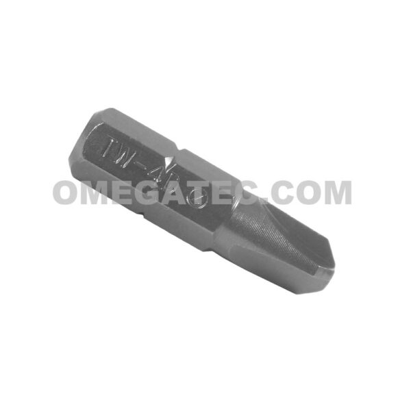 Zephyr Tri-Wing ® screwdriver bit, 1/4” hex insert shank, recess size #4, overall length 1”. Equivalent to Apex TWD-4.