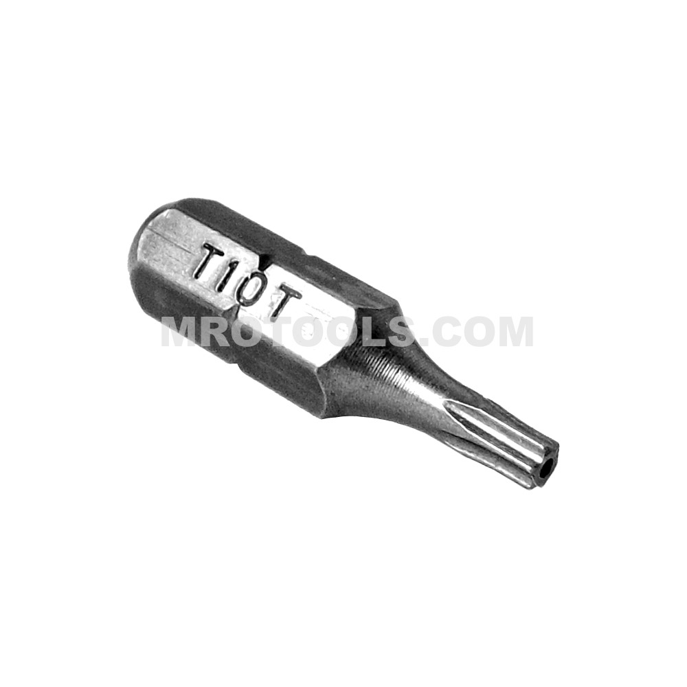 T-10 Zephyr tamper-resistant Torx ® insert bit, 1/4” hex shank, 1” overall length. Equivalent to Apex 440-TX-10-H.