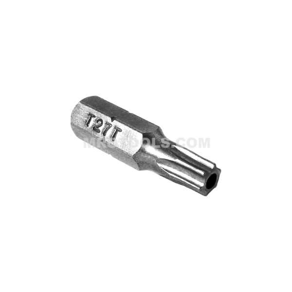 T-27 Zephyr tamper-resistant Torx ® insert bit, 1/4” hex shank, 1” overall length. Equivalent to Apex 440-TX-27-H.