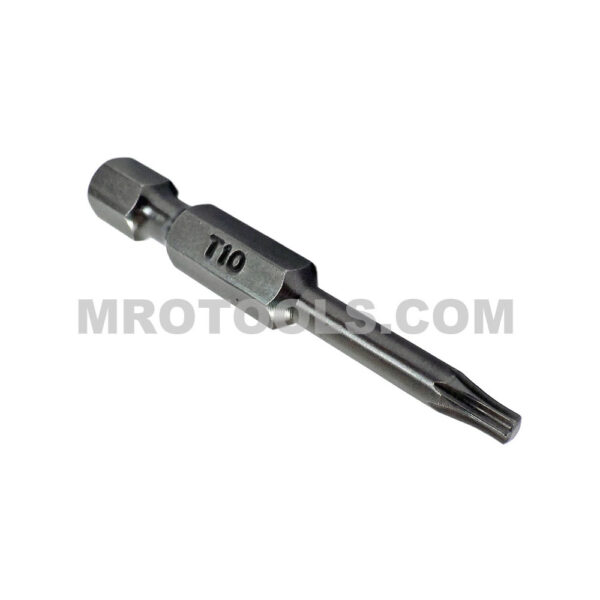 T-10 Zephyr Torx ® power drive bit, 1/4” hex shank, 1 15/16” overall length. Equivalent to Apex 49-TX-10.