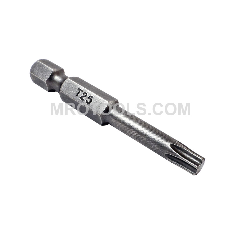 T-25 Zephyr Torx ® power drive bit, 1/4” hex shank, 1 15/16” overall length. Torx ® fasteners are becoming more and more common in automotive and appliance assembly. Zephyr Torx ® bits are made from high quality tool steel and are constructed to perform in demanding environments.